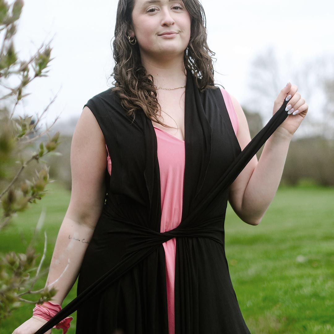 the BECCA vest is that perfect lightweight easy vest layer to add elegance to any look any season.