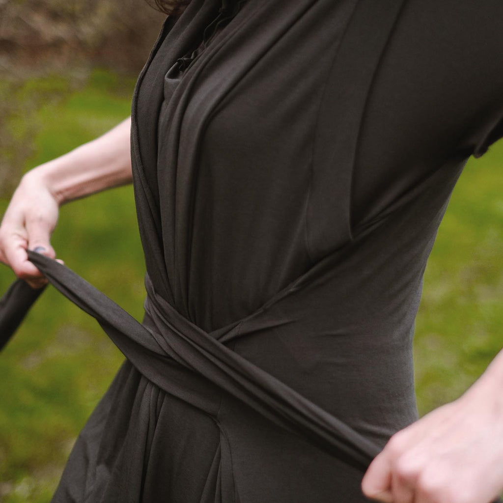 • our signature baguette pocket can be turned inside out for a belt to wrap
