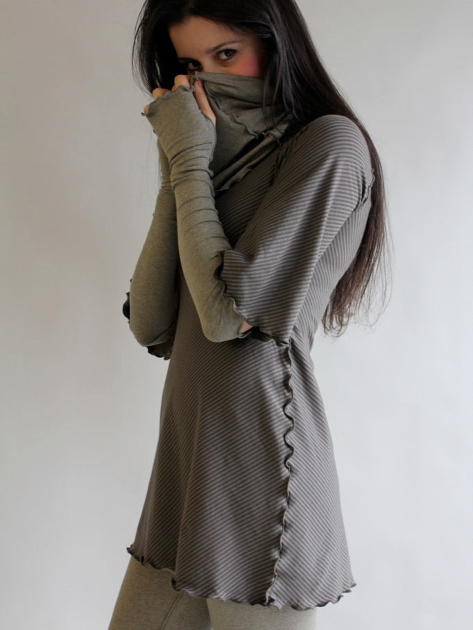 we design a lot of our fitted tops with extra length to be gathered or ruched over the tummy or waistbands for flattering texture and lovely way to enjoy.
